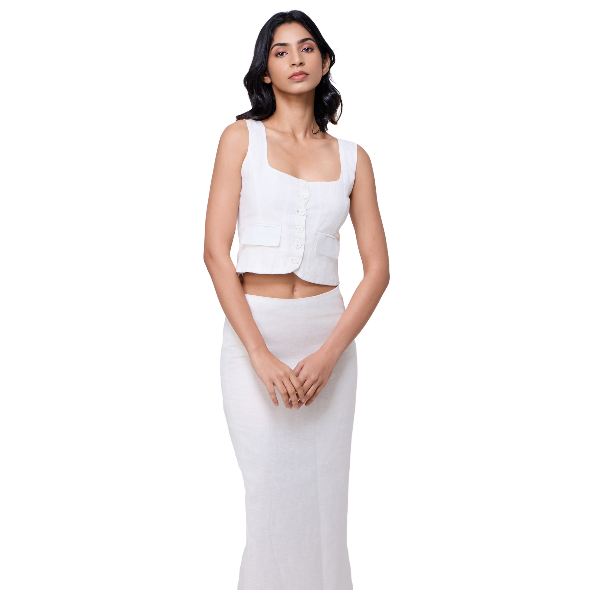 Linen Skirt And Vest Set